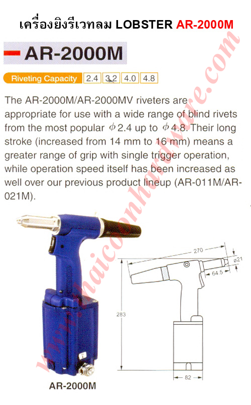 | รีเวทลม, lobster, ar-2000m, ar2000m, เครื่องยิงรีเวทสายไฟฟ้า, เครื่องยิงรีเวทสาย ar-2000m, air riveters ar-2000m, ร็อบสเตอ, lobstertools, รีเวทลม |