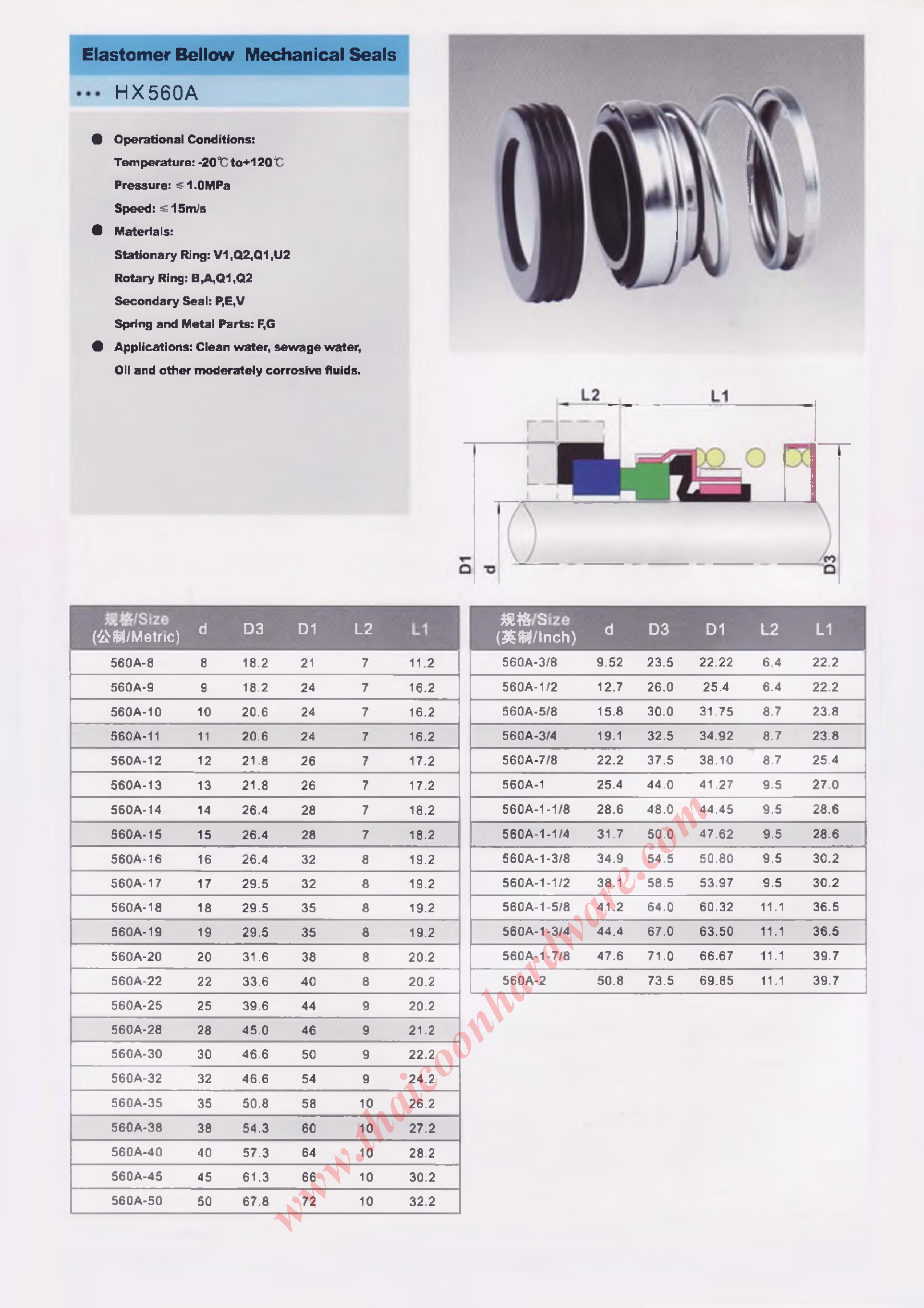 Elastomer Bellow Mechanical Seals HX560A.