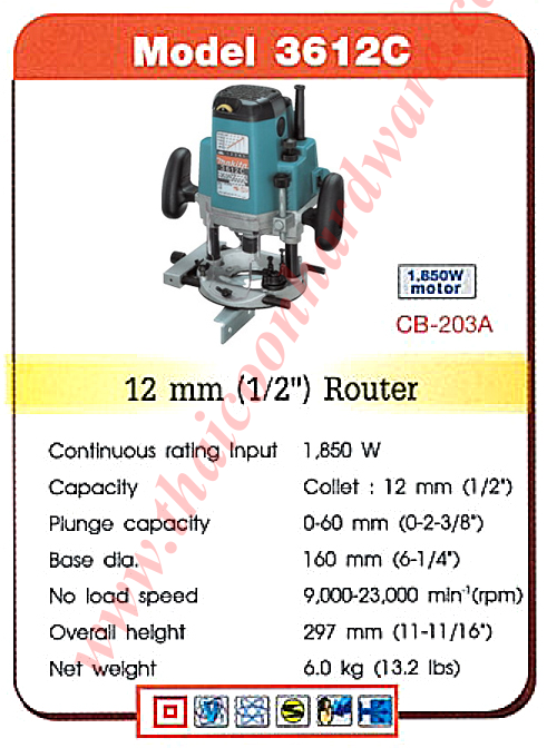 | เครื่องฉลุลายไม้ makita 3612c, เครื่องฉลุลายไม้ 3612c, เครื่องเร้าเดอร์ 3612c, เครื่องเร้าเดอร์ makita 3612c, router makita 3612c, router 3612c, router3612c, 1,850w, 1,850w moter, 1850w, 1850w moter, 12 mm (1/2") router |