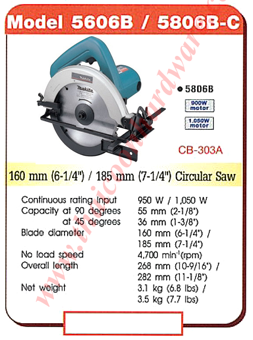 | สนใจ เลื่อยวงเดือนไฟฟ้า makita 5606b / 5806b-c ติดต่อได้ที่เบอร์ Tel: 02-3935898, 091-7899265, Fax:02-3935894 Email: joypst@hotmail.com, ID Line : 789batteryplus |