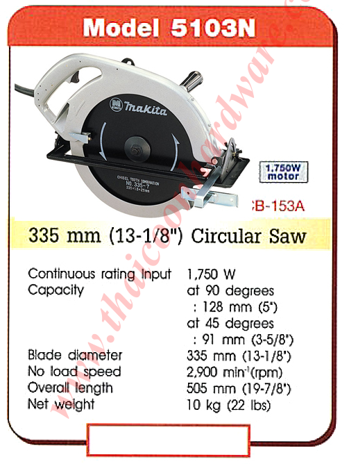 | สนใจ เลื่อยวงเดือนไฟฟ้า makita 5103n ติดต่อได้ที่เบอร์ Tel: 02-3935898, 091-7899265, Fax:02-3935894 Email: joypst@hotmail.com, ID Line : 789batteryplus |
