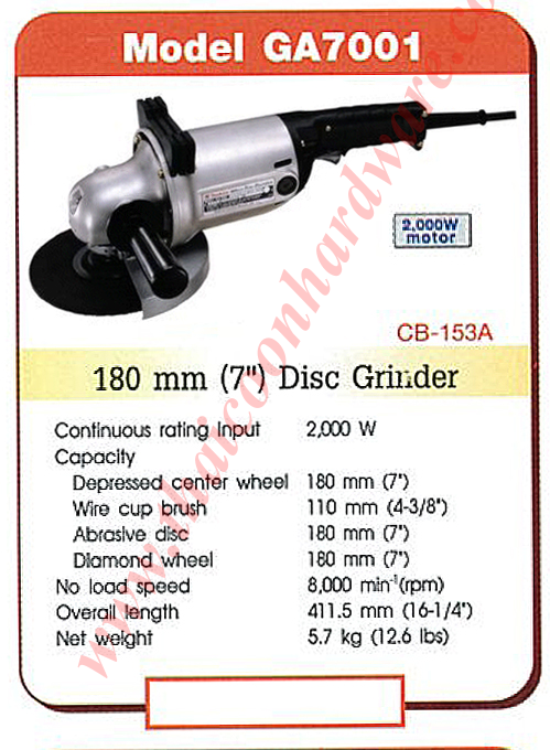 | เครื่องเจียรไฟฟ้า makita ga7001, เครื่องเจียรไฟฟ้า ga7001, disc grinder ga7001, disc grinder makita ga7001, 180 mm (7") disc grinder, 200w moter, 2,000w moter |