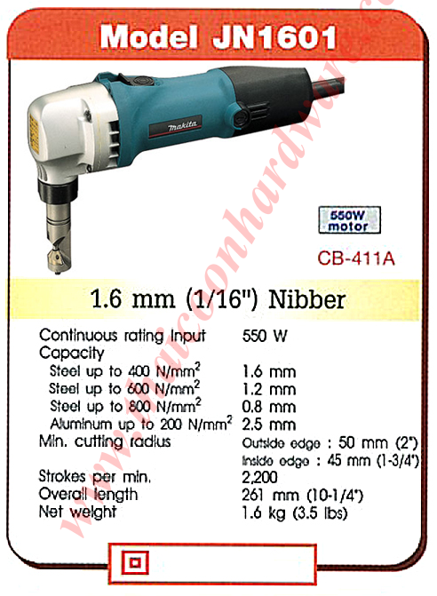 | กรรไกรตัดเหล็กไฟฟ้า makita jn1601, 1.6 mm (1/16") nibber, 550w, 550w moter, nibber makita jn1601, nibber jn1601 |