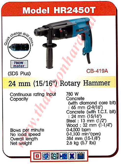 | สนใจ สว่านกระแทกโรตารี่ makita hr2450t ติดต่อได้ที่เบอร์ Tel: 02-3935898, 091-7899265, Fax:02-3935894 Email: joypst@hotmail.com, ID Line : 789batteryplus |