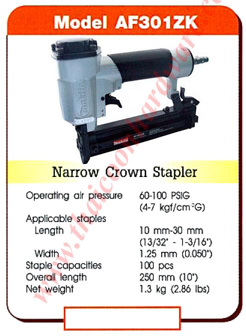 ปืนลมยิงตะปู makita af301zk, เครื่องยิงตะปูลม af301zk, แม็กลมขาเดี่ยว makita af301zk, narrow crown stapler makita af301zk