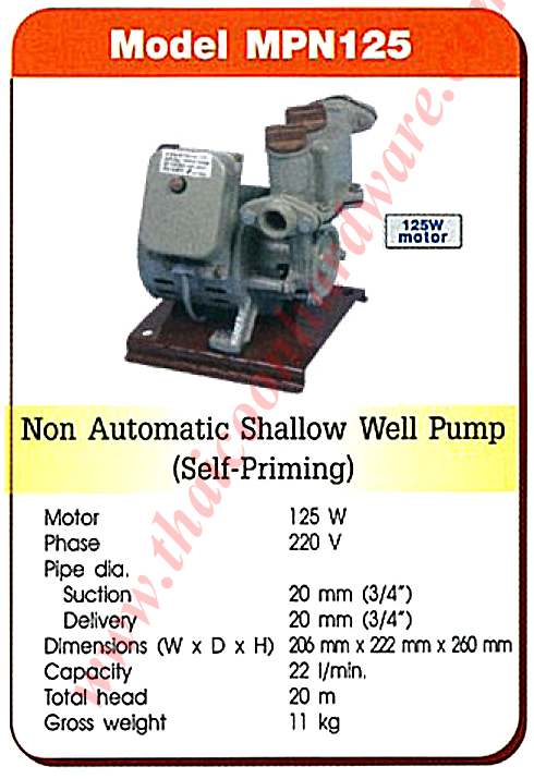 ปั๊มน้ำ makita cr38a, ปั๊มน้ำแบบ Self-Priming (ไม่มีถัง) ชนิด 1 เฟส 220V, non automatic shallow well pump (self-priming)
