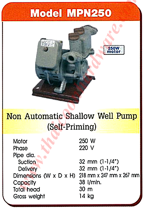 ปั๊มน้ำ makita mpn250, non automatic shallow well pump (self-priming), ปั๊มน้ำแบบ Self-Priming (ไม่มีถัง) ชนิด 1 เฟส 220V