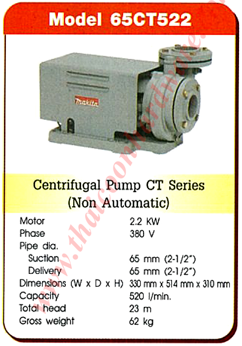 | ปั้มน้ำหอยโข่ง makita 65ct522, ปั๊มน้ำ Makita 65ct522, ปั้มน้ำไฟฟ้าหอยโข่ง makita 65ct522, 2.2kw, 380v, 1.5w motor, centrifugal pump ct series (non automatic) |
