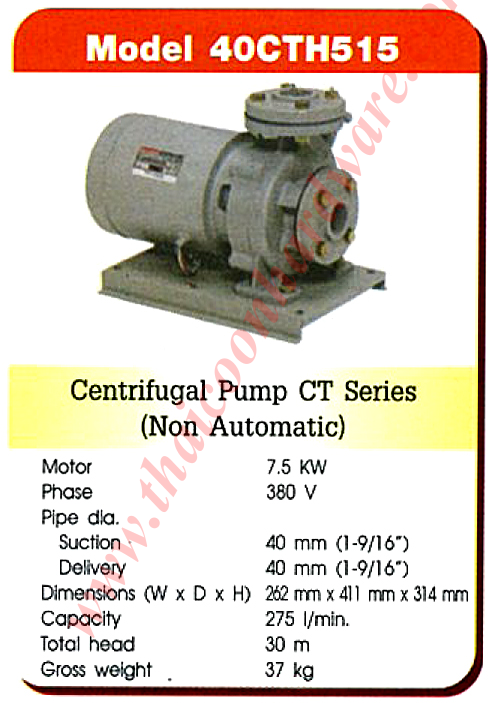 | ปั้มน้ำหอยโข่ง makita 40cth515, ปั๊มน้ำ Makita 40cth515, ปั้มน้ำไฟฟ้าหอยโข่ง makita 40cth515, 7.5kw, 380v, 7.5kw motor, centrifugal pump ct series (non automatic) |