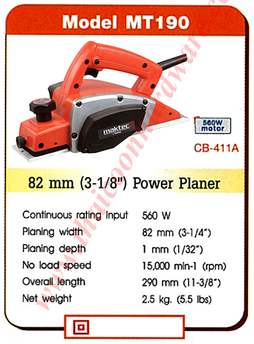 | กบไฟฟ้า maktec mt190, กบไฟฟ้า 82mm (3-1/8") maktec power planer mt190, maktec power planer mt190, power planer mt190, กบไฟฟ้า 3 นิ้ว maktec mt190, 82mm (3-1/4") power planer, 560w, 560w moter |
