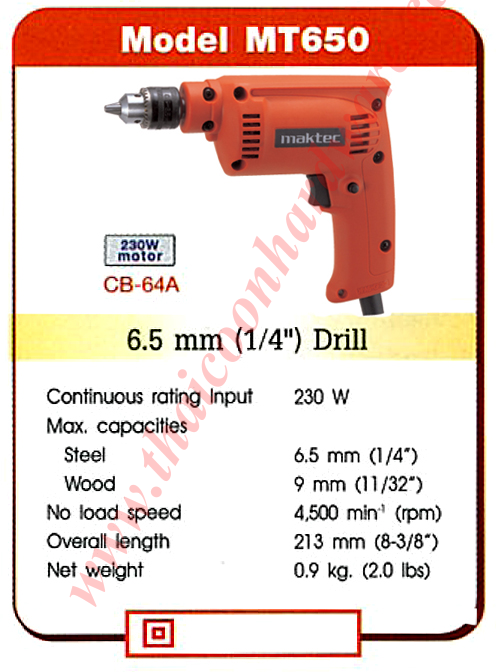 | สว่านไฟฟ้า makita mt650, สว่านไฟฟ้า mt650, 6.5 mm (1/4") drill, 230w, 230w moter, makita mt650, สว่านไฟฟ้า mt650, สว่านไฟฟ้า ยี่ห้อ maktec รุ่น mt650 ขนาด 1/4"
