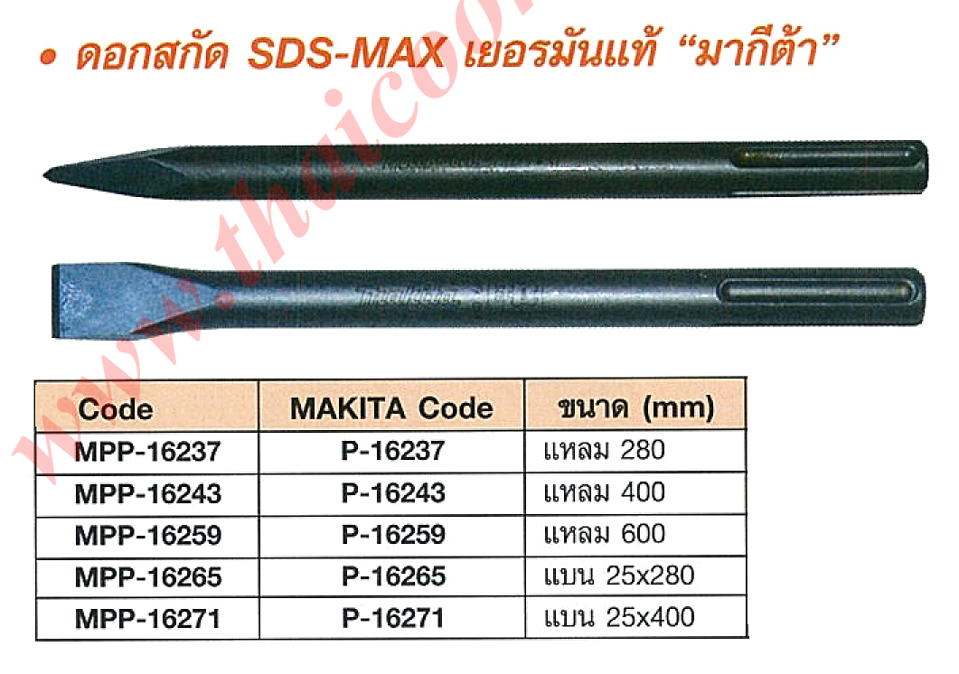 | สนใจ ดอกสกัด makita sds-max เยอรมันแท้ Tel: 02-3935898, 091-7899265, Fax:02-3935894 Email: joypst@hotmail.com, ID Line : 789batteryplus |