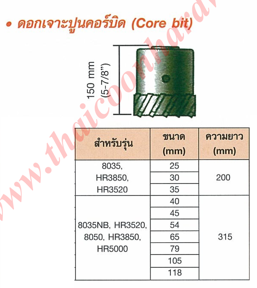 | ดอกเจาะปูนคอร์บิด (core bit), ดอกเจาะปูนคอร์บิด makita (core bit), |