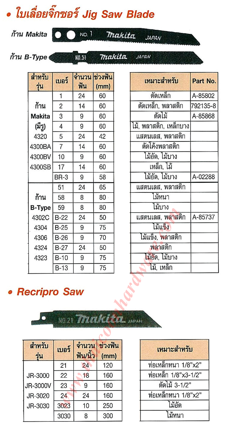 | สนใจ ใบเลื่อยจิ๊กซอร์ makita ติดต่อได้ที่เบอร์ Tel: 02-3935898, 091-7899265, Fax:02-3935894 Email: joypst@hotmail.com, ID Line : 789batteryplus |