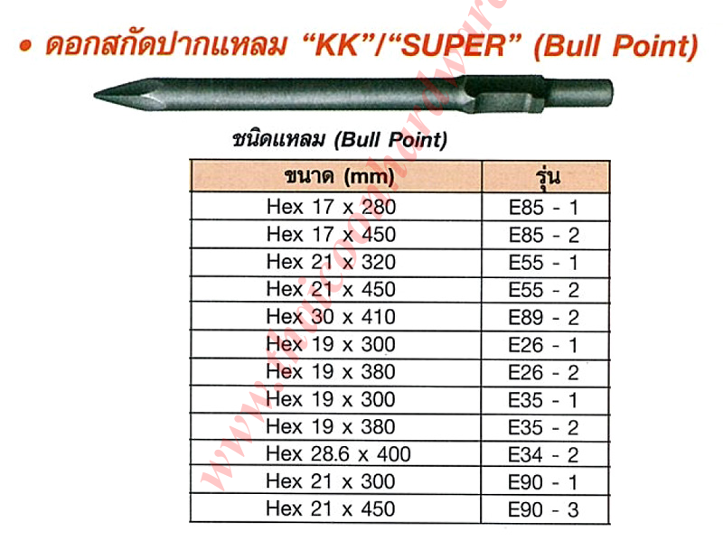 | สนใจ ดอกสกัดปากแหลม (bull point) ติดต่อได้ที่เบอร์ Tel: 02-3935898, 091-7899265, Fax:02-3935894 Email: joypst@hotmail.com, ID Line : 789batteryplus |