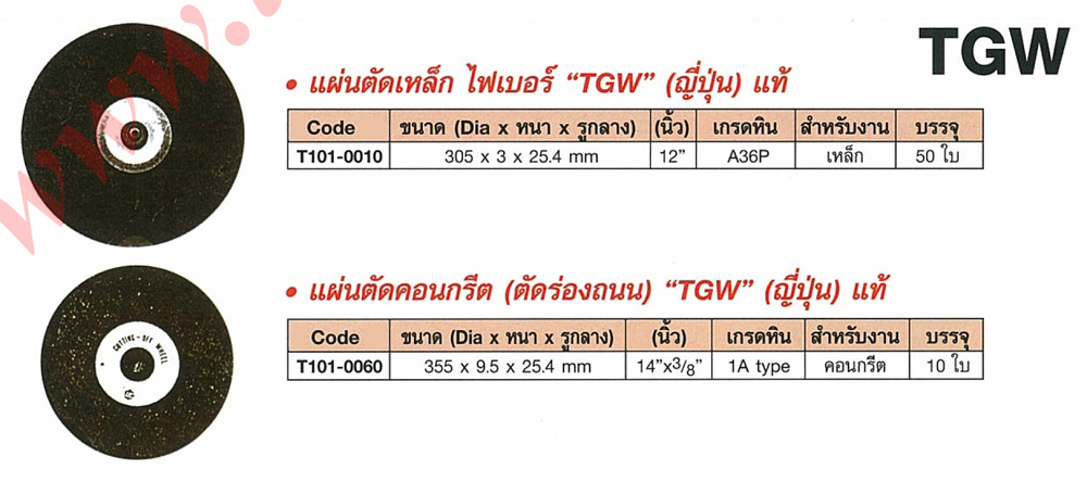 แผ่นตัดเหล็ก ไฟเบอร์ tgw, แผ่นตัดคอนกรีต (ตัดร่องถนน) tgw