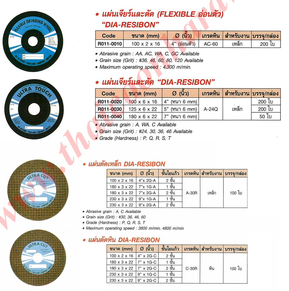 แผ่นเจียร์ (flexible) อ่อนตัว dia-resibon, แผ่นเจียร์และตัด dia-resibon