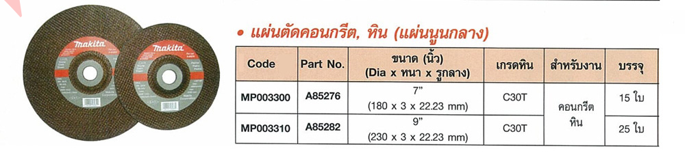 | สนใจ แผ่นตัดคอนกรีต, หิน makita ติดต่อได้ที่เบอร์ Tel: 02-3935898, 091-7899265, Fax:02-3935894 Email: joypst@hotmail.com, ID Line : 789batteryplus |