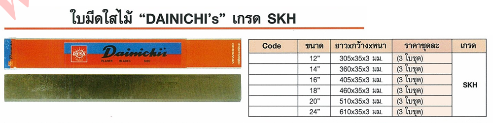 ใบมีดใสไม้ DAINICHI'S เกรด SKH