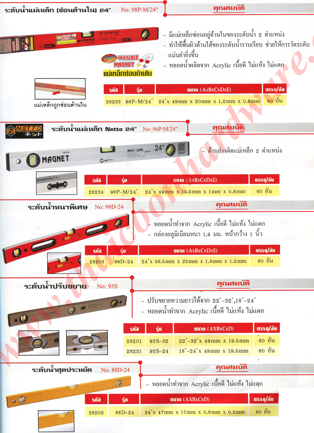 | ระดับซุปเปอร์ฮิต, multi-level, ระดับน้ำแม่เหล็กแถบ+หน้าต่าง, ระดับน้ำแม่เหล็กแถบ, ระดับน้ำแม่เหล็ก, ระดับน้ำ i-beam, ระดับ, ระดับน้ำแม่เหล็ก9", ระดับน้ำแม่เหล็ก (ซ่อนด้านใน) 24", ระดับน้ำแม่เหล็ก Netto 24", ระดับน้ำหนาพิเศษ, ระดับน้ำปรับขยาย, ระดับน้ำสุดประหยัด |