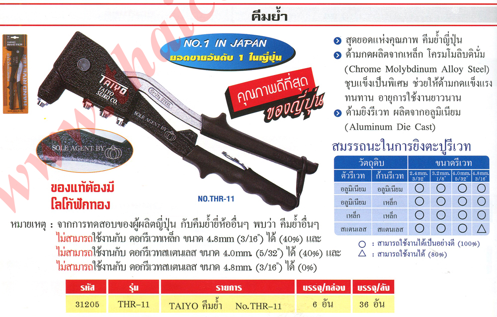 คีมย้ำรีเวท taiyo, คีมย้ำ taiyo, รีเวท taiyo, taiyo คีมย้ำ