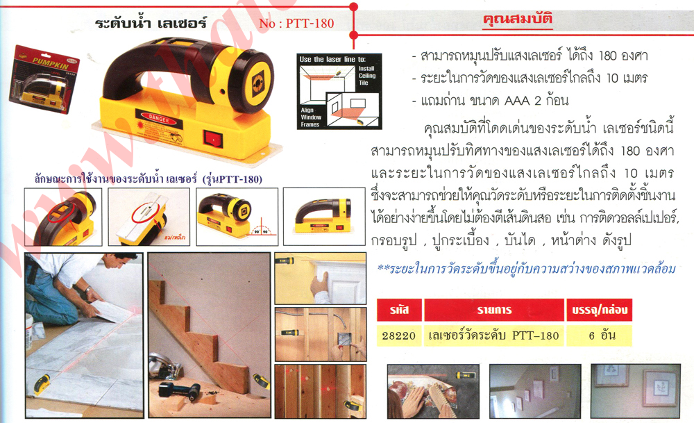 ระดับน้ำ เลเซอร์, ระดับน้ำ เลเซอร์ รุ่น ptt-180, เลเซอร์วัดระัดับ ptt-180
