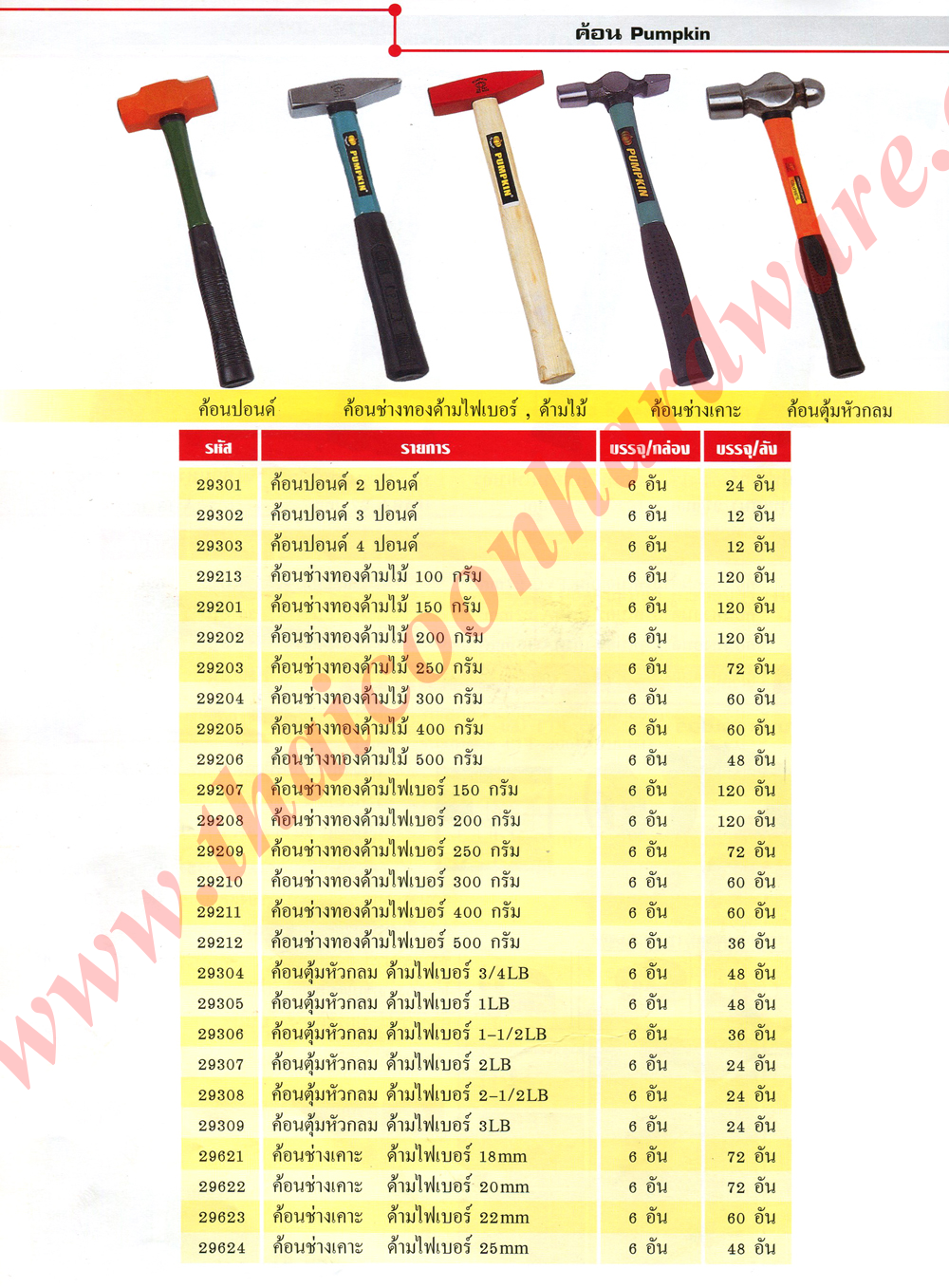 | ค้อน pumpkin, ค้อนปอนด์, ค้อนช่างทองด้ามไฟเบอร์, ด้ามไม้, ค้อนช่างเคาะ, ค้อนตุ้มหัวกลม |