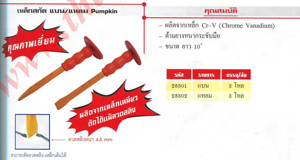 เหล็กสกัด แบน/แหลม pumpkin, เหล็กสกัด แบน, เหล็กสกัด แหลม, construction tools