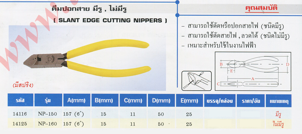 | คีมปอกสาย มีรู, ไม่มีรู, slant edge cutting nippers, คีมปอกสาย tsunoda |