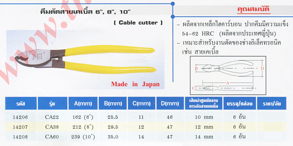 | คีมตัดสายเคเบิ้ล, คีมตัดสายเคเบิ้ล tsunoda, คีมตัดสายเคเบิ้ล 6", 8", 10", cable cutter |