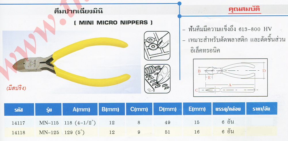 สนใจ คีมปากแหลมมินิ tsunoda ติดต่อได้ที่เบอร์ Tel: 02-3935898, 091-7899265, Fax:02-3935894 Email: joypst@hotmail.com, ID Line : 789batteryplus