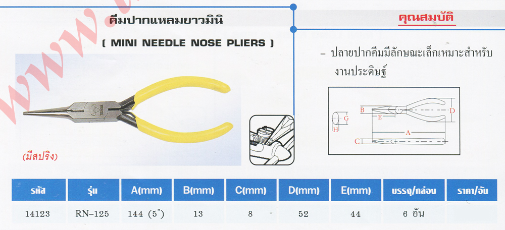 สนใจ คีมปากแหลมยาวมินิ ติดต่อได้ที่เบอร์ Tel: 02-3935898, 091-7899265, Fax:02-3935894 Email: joypst@hotmail.com, ID Line : 789batteryplus
