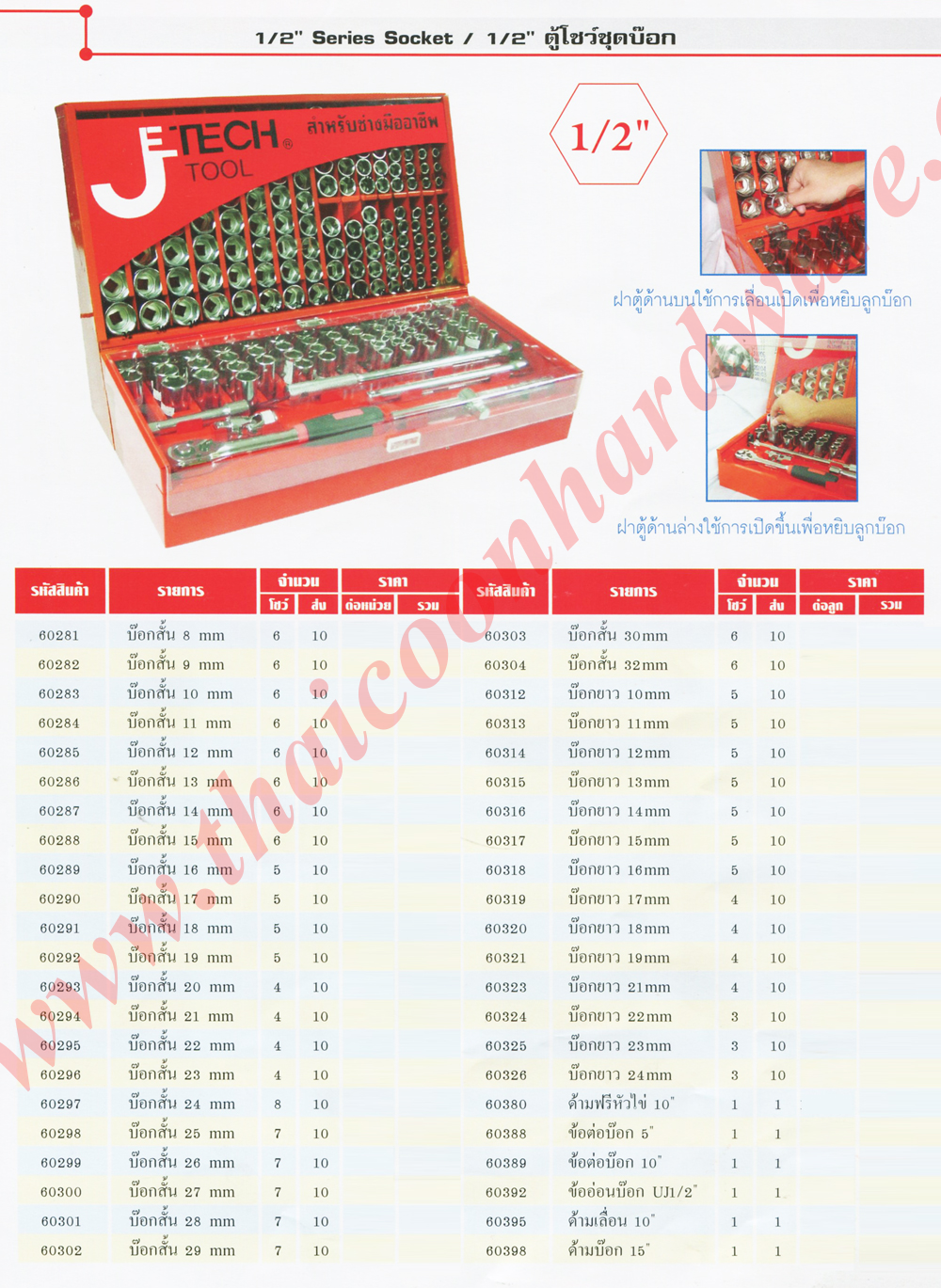 | socket display, socket jetech, ตู้โชว์ชุดบ๊อก, ตู้บ๊อก, 1/2" series / 1/2" ตู้โชว์ชุดบ๊อก, บ๊อกสั้น, บ๊อกยาว |