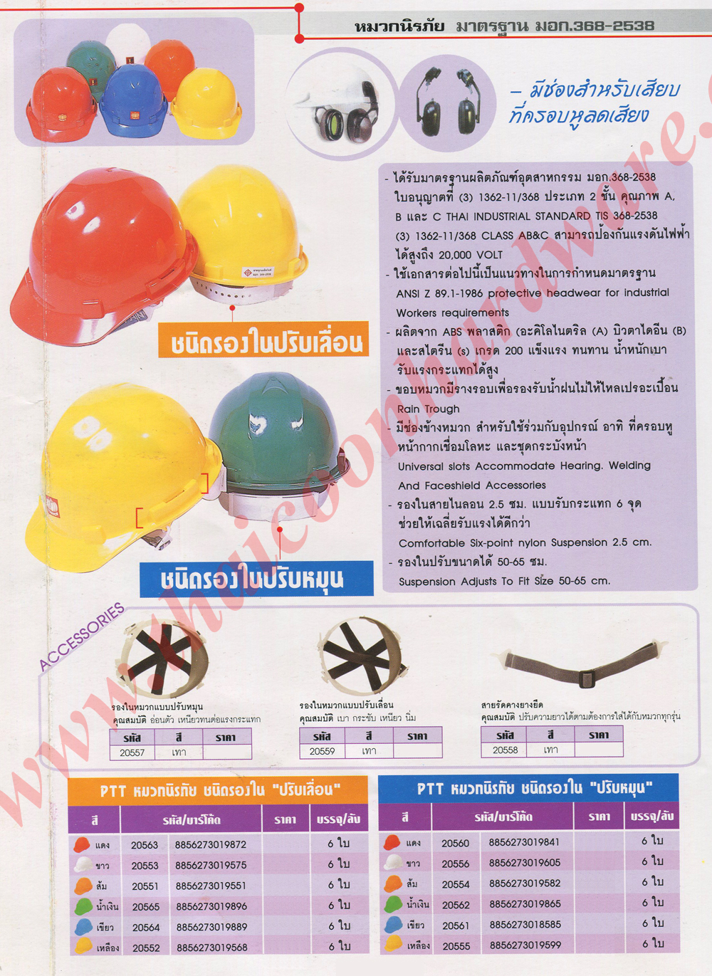 | หมวกนิรภัย, safety helmet, มอก.368-2538, ptt |