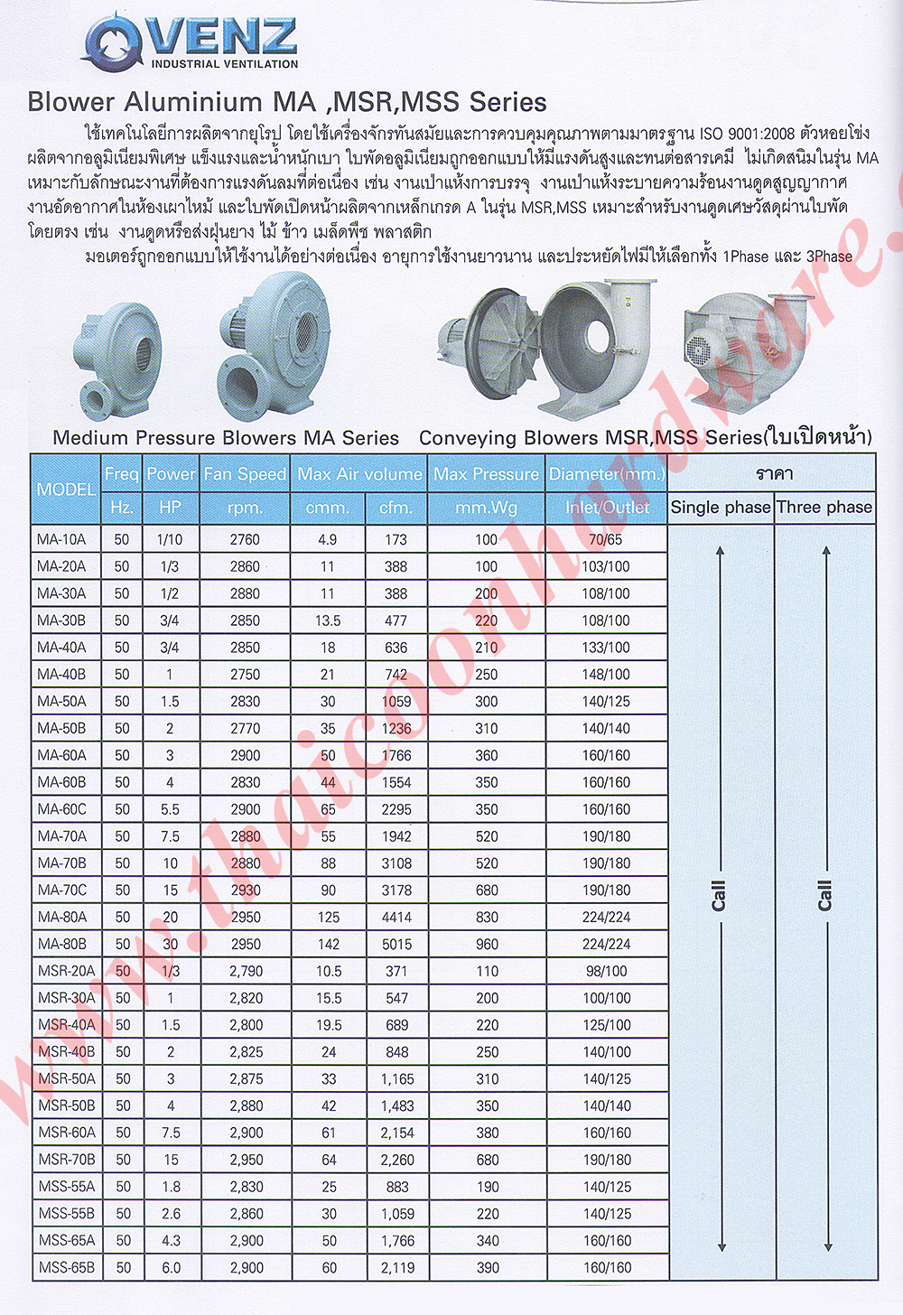 | blower aluminium MA, MSR,MSS Series, Medium Pressure MA Series Coveying Blowers MRS,MSS Series |