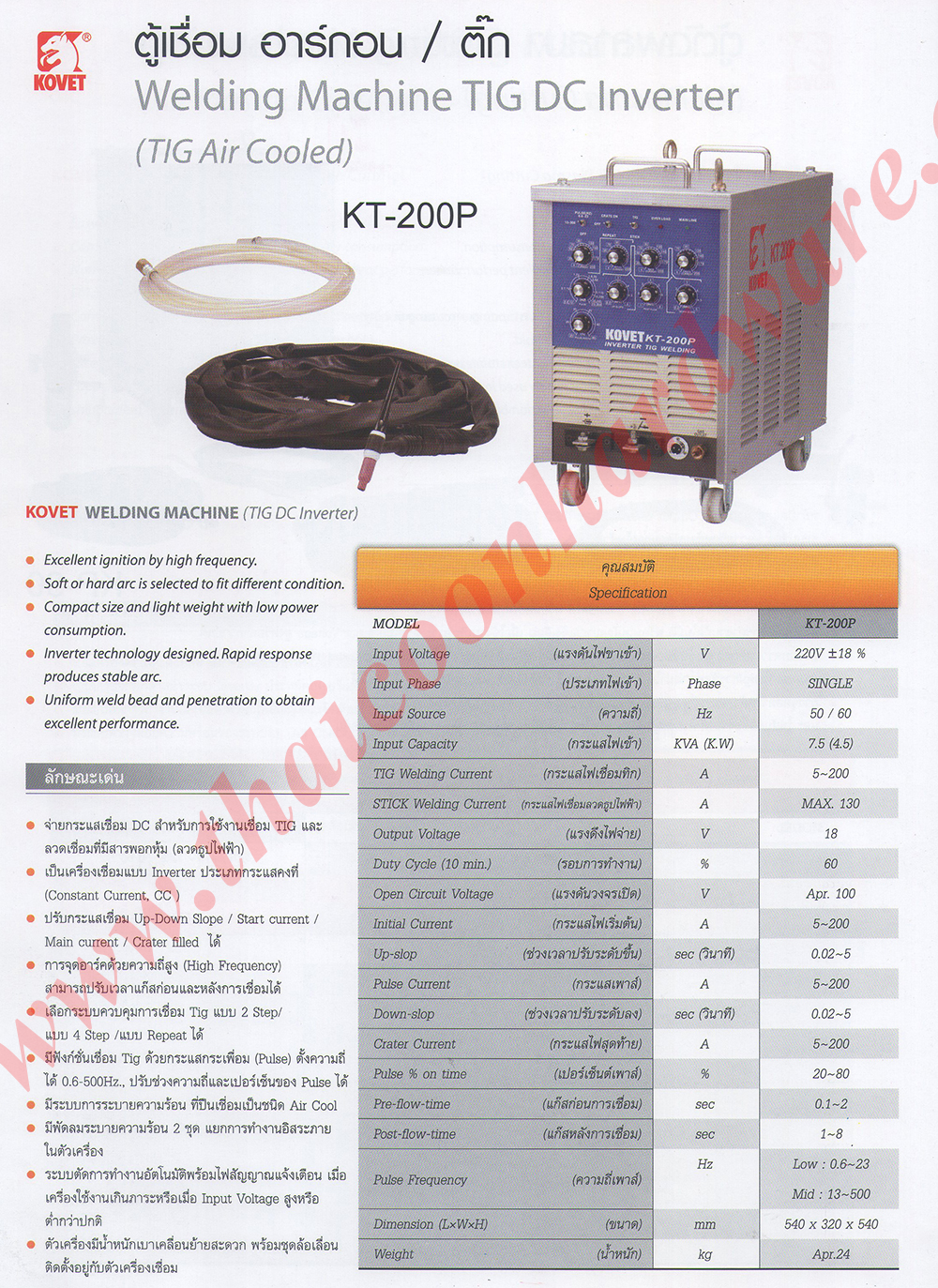 ตู้เชื่อม อาร์กอน / ติ๊ก TIG DC Inverter, ตู้เชื่อม อาร์กอน, TIG DC Inverter, TIG Air Cooled