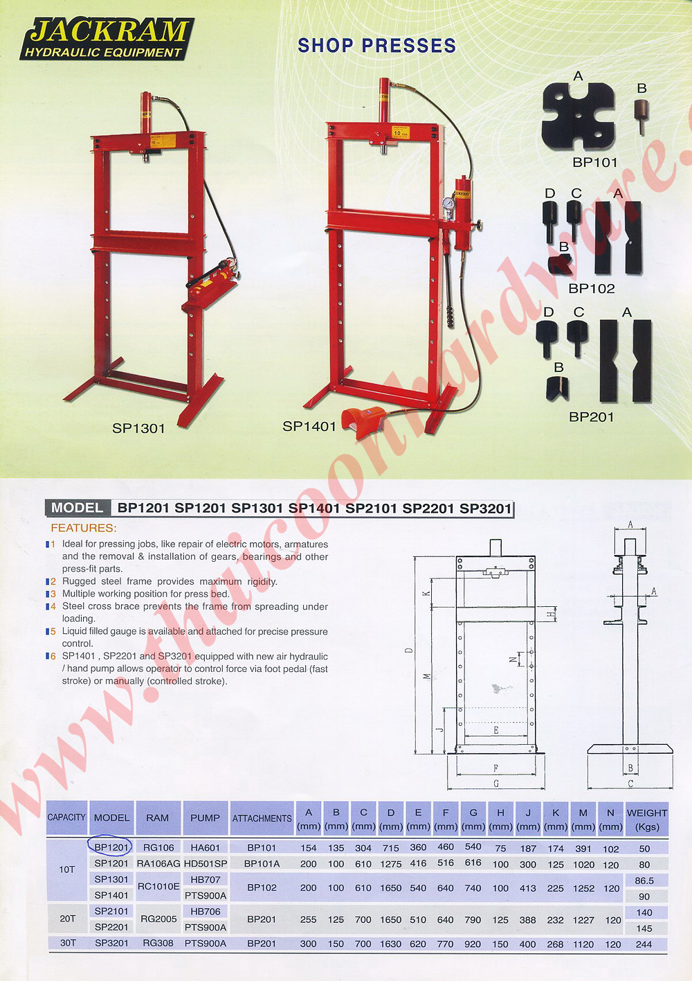 | แท่นอัดไฮดรอลิก, แท่นอัดไฮดรอลิก jackram, shop presses, jackram hydraulic equipment |
