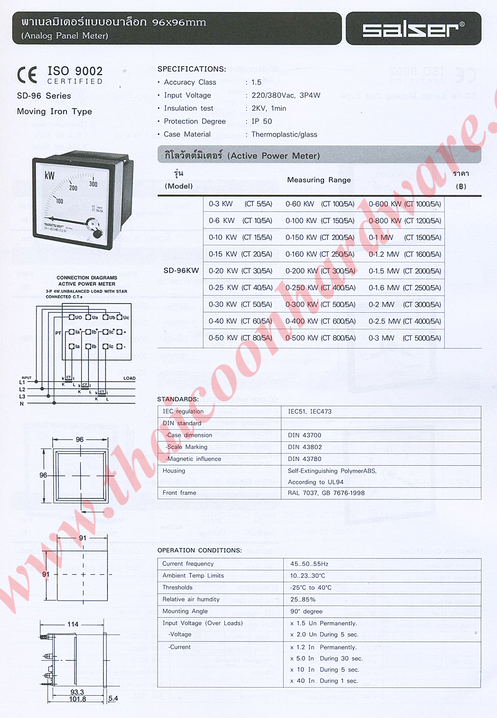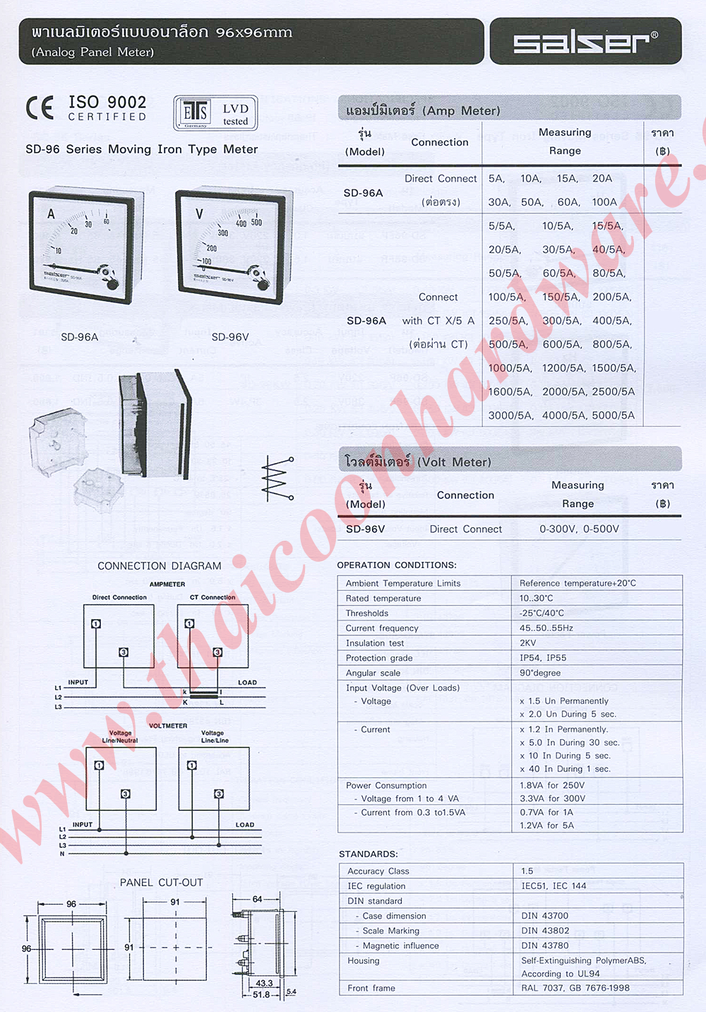 พาเนลมิเตอร์แบบอนาล็อก salzer, analog panel meter, แอมป์มิเตอร์, Amp Meter, volt meter, connection diagram, frequency meter, power factor meter, active power meter, measuring range, moving iron type, แบบเข็ม, power factor, แบบสั่น, connection diagram