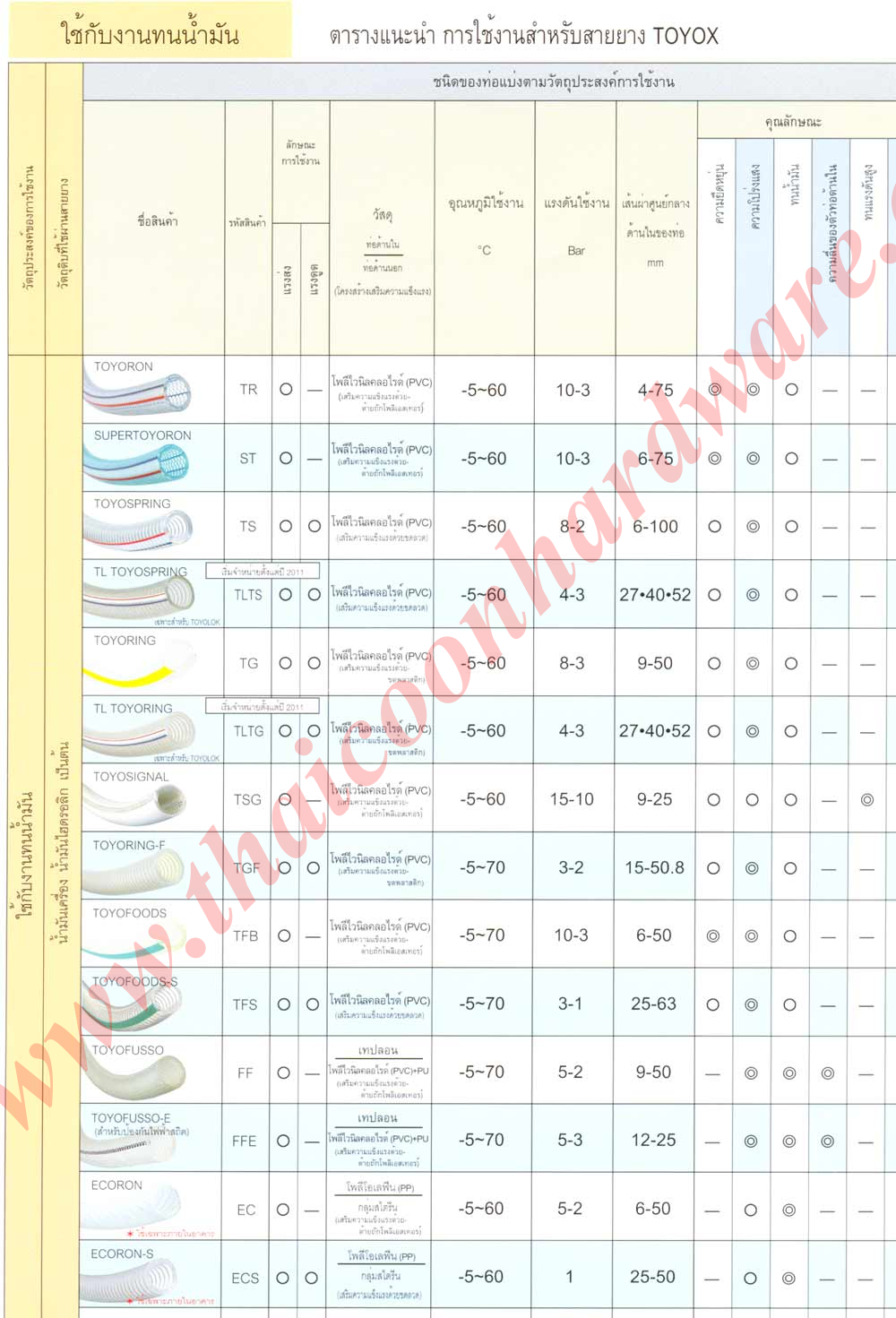 | สนใจ TOYOX ท่อสายยาง(ใช้กับงานทนน้ำมัน) ติดต่อได้ที่เบอร์ Tel: 02-3935898, 091-7899265, Fax:02-3935894 Email: joypst@hotmail.com, ID Line : 789batteryplus |