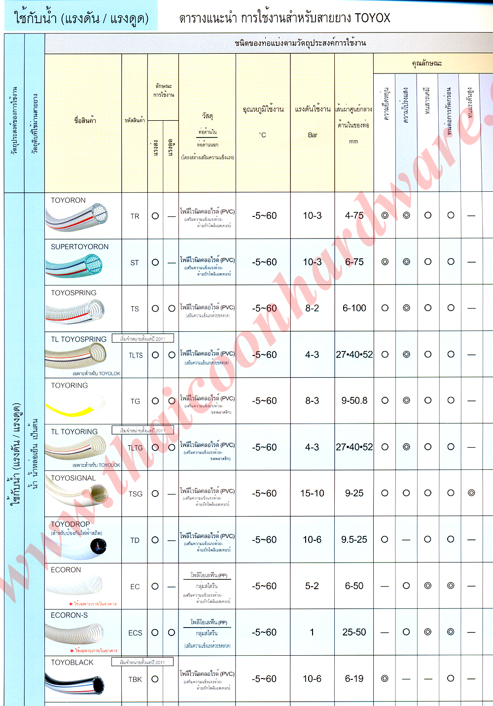 | TOYOX ท่อสายยาง (ใช้กับน้ำ แรงดัน / แรงดูด) |