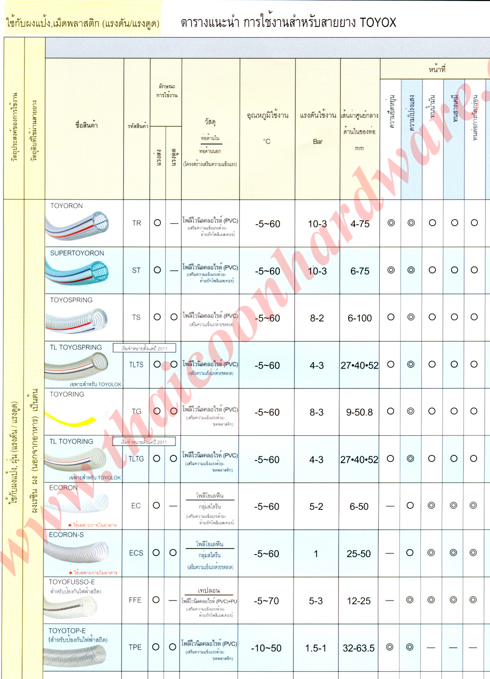 toyox ท่อสายยาง ใช้กับผงแป้ง, เม็ดพลาสติก |