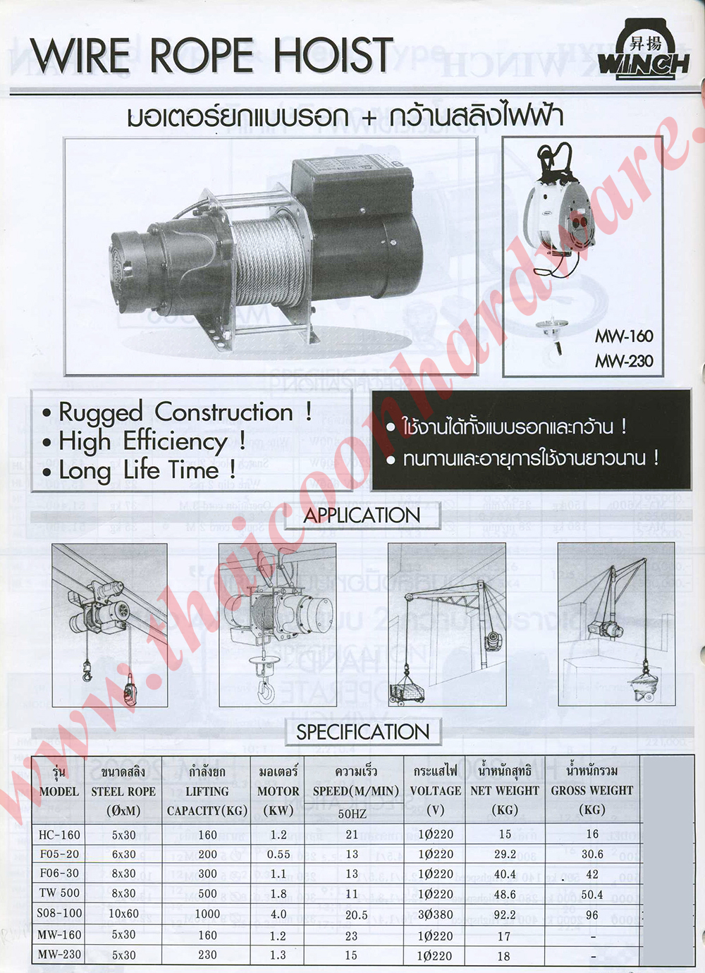 | wire rope hoist, มอเตอร์ยกแบบรอก, กว้านสลิง, hoist, electric steel rope specifications |