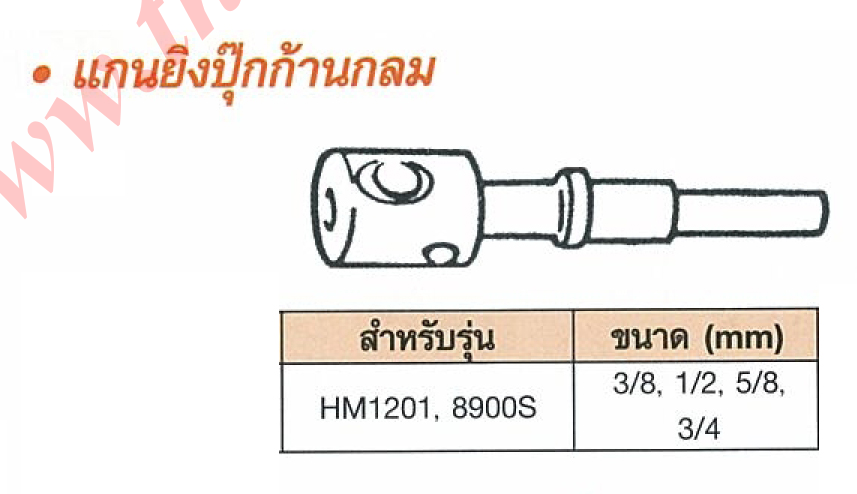 สนใจ แกนยิงปุ๊กก้านกลม makita ติดต่อได้ที่เบอร์ Tel: 02-3935898, 091-7899265, Fax:02-3935894 Email: joypst@hotmail.com, ID Line : 789batteryplus