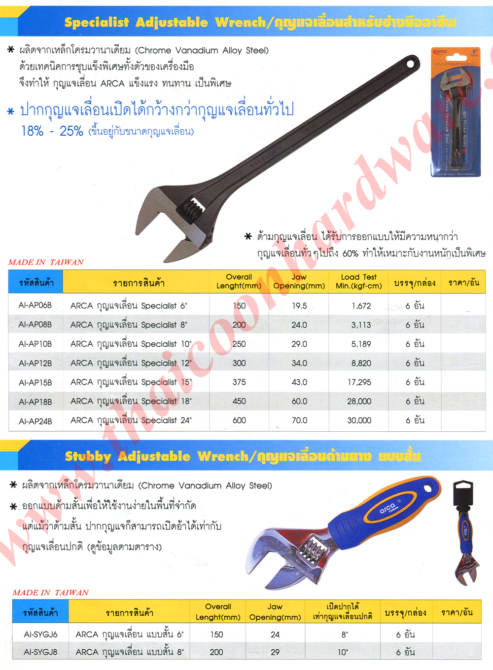 | สนใจ ประแจเลื่อน arca ติดต่อได้ที่เบอร์ Tel: 02-3935898, 091-7899265, Fax:02-3935894 Email: joypst@hotmail.com, ID Line : 789batteryplus |