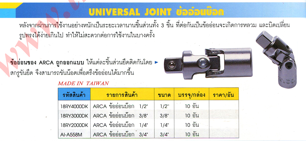 | universal joint ข้ออ่อนบ๊อก, ข้อต่อบ๊อกพับ, ข้อต่อพับ, arca ข้ออ่อนบ๊อก |